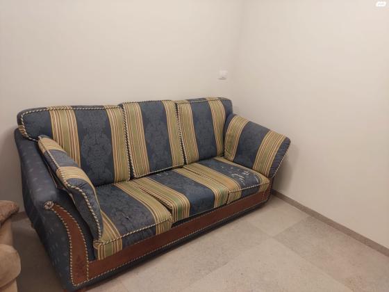 ספה וינטג' אמיתית משנות ה-60(!!) עם עיטורי עץ, נקנתה מדירה ישנה בתל אביב לפני 3 שנים בלא מעט כסף. ספה מעלפת שלא ניתן כבר להשיג היום...מוכרים עקב שידרוג לספה גדולה עקב מעבר דירה.גילוי נאות - יש מעט קרעים בריפוד כפי שרואים בתמונה, ריצ'רץ' של אחד הכריות צריך תיקון, כדאי לתקן את השלד באזור הישיבה כדי שהספה תהיה פחות "שוקעת"(לנו זה היה בסדר גמור...)לא בשבת ספה וינטג'