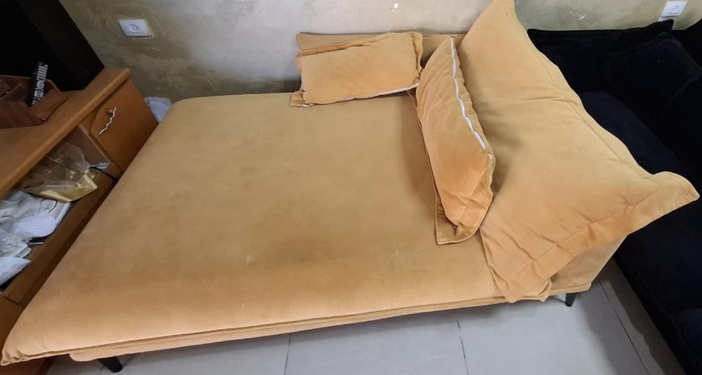 ספה מקטיפה, צבע שחור, שמורה אורך 2.60 מחיר 1,000 שח + לאב סיט זוגי שמור, צבע חרדל מחיר 800 שח. שניהם קלים לניקוי. נרכשו מרהיטי קיבוץ השלושה בראשלצ. ניתן לרכוש ביחד או בנפרד.