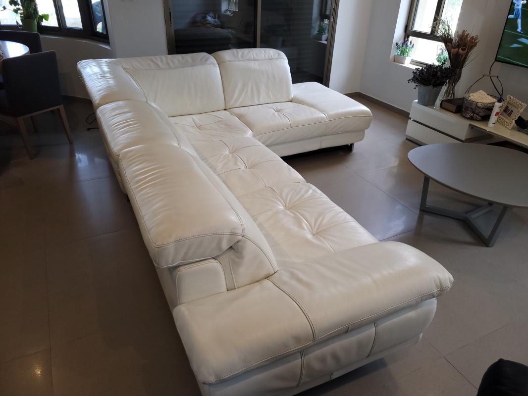 ספת עור פינתית איטלקית לבנה, מדהימה ומפנקת מבית DIVANNI, שמורה מאוד במצב מצוין, כריות מתכווננות ל 3 מצבים, מידות 220*300, ניתנת להפרדה לשתי יחידות נפרדות, גמיש לרציניים בלבד ספת עור פינתית איטלקית DIVANNI