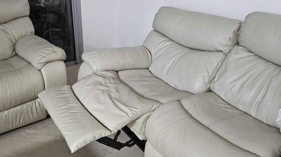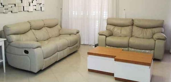 **מבאר שבע, מחיר גמיש לרציניים בלבד**סט ספות עור אמיתי ייצור אמריקאי עם ריקליינרים (נפתחות למצב שכיבה) 2+3, צבע אפור בהיר, נקנה ב"קיבוץ רהיטי השלושה".במצב שמור.**איסוף / פירוק / הובלה ע"י הקונה**(ללא השולחנות שבתמונה).