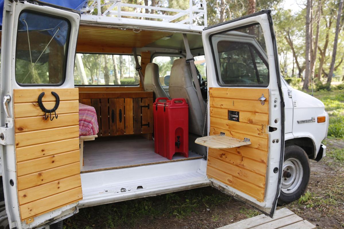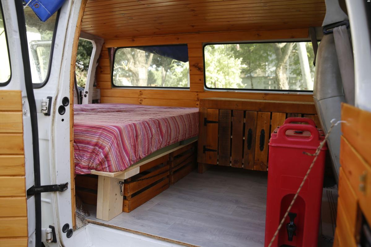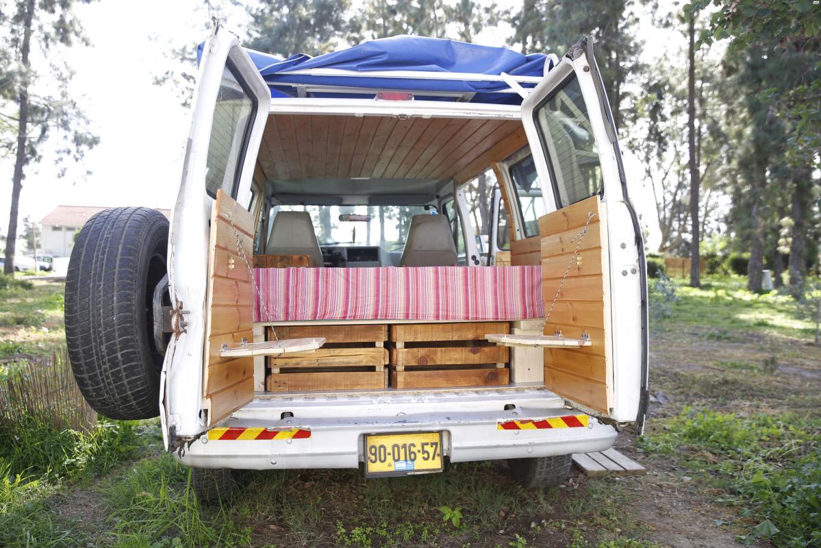 פנים הרכב בנוי מעץ ומאובזר במיטה , ארונית לאיכסון של כלי מטבח ומוצרי מזון , מתחת למיטה יש עוד 4 ארגזי איכסון נשלפים ענקיים שאפשר להכניס בהם מה שלא תרצו , לייד הנהג יש עוד ארונית לאיכסון , על הדלתות יש מדפים מתקפלים , ריצפת האוטו עשויה פרקט PVC קל מאוד לניקוי ! האוטו מבודד תרמי ואקוסטי, וקיים גם גגון ענק להעסמה של דברים