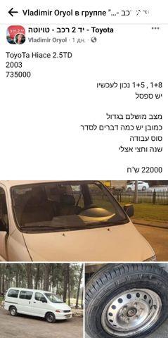 טויוטה הייאס קצר STD אוט' דיזל 2.5 (102 כ''ס) דיזל 2003 למכירה באשדוד