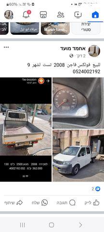 פולקסווגן טרנספורטר טנדר דאבל קבינה ידני דיזל 2.5 (130 כ"ס) דיזל 2008 למכירה בעין מאהל