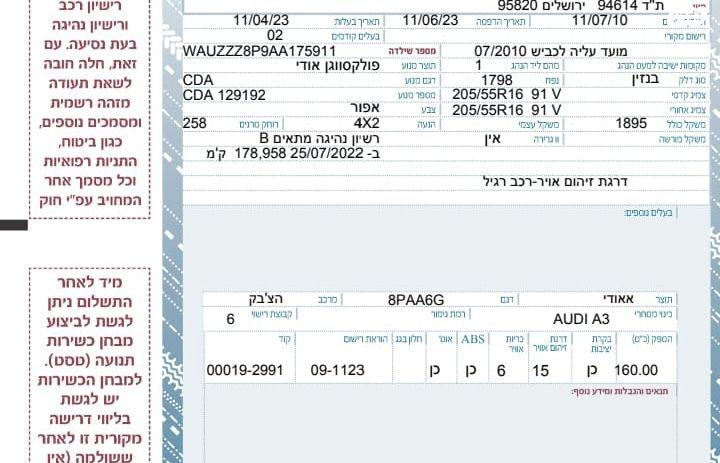 אאודי A3, בצבע שחור, יד שניה, 178000 קילומטרים