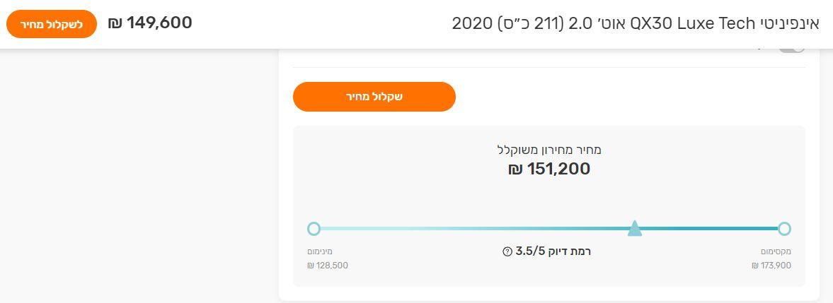 אינפיניטי QX30 Luxury Tech אוט' 2.0 (211 כ''ס) בנזין 2020 למכירה ברמת השרון