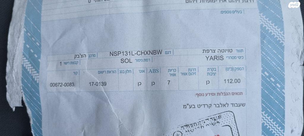 טויוטה יאריס Sol אוט' 1.5 (112 כ"ס) בנזין 2019 למכירה בניצן