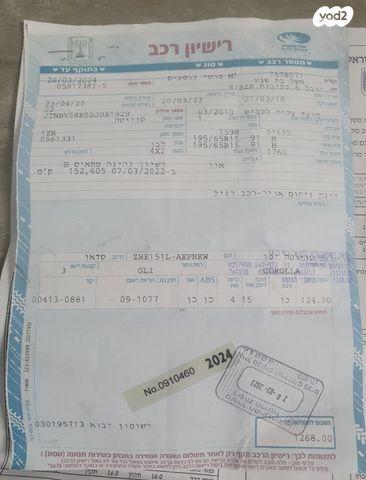 טויוטה קורולה GLI אוט' 1.6 (124 כ''ס) בנזין 2010 למכירה בנתיבות