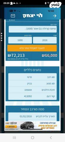טויוטה קורולה GLI-FL אוט' 1.6 (132 כ''ס) [2013-2016] בנזין 2016 למכירה באשקלון