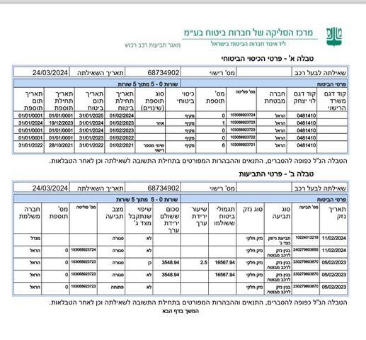 מצורף דוח סליקה של חברת הביטוח .