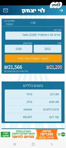 יונדאי i10 Inspire אוט' 1.1 (69 כ"ס) בנזין 2012 למכירה בירושלים
