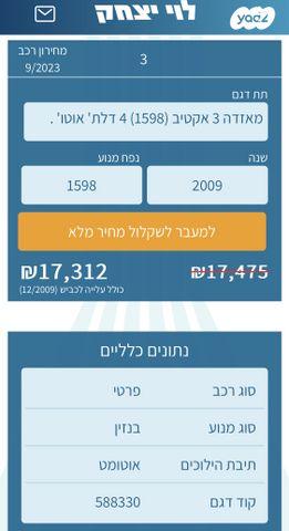 מאזדה i Active סדאן אוט' 1.6 (105 כ''ס) בנזין 2009 למכירה בחיפה