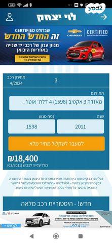 מאזדה i Active סדאן אוט' 1.6 (105 כ''ס) בנזין 2011 למכירה ברחובות