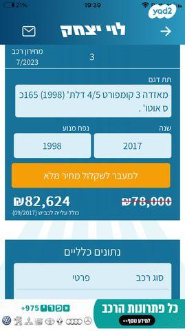 מאזדה j Comfort הצ'בק אוט' 2.0 (165 כ"ס) בנזין 2017 למכירה בתל אביב יפו