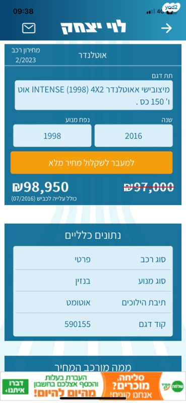 טסט לשנה 7u002F2024.אפשרות להחלפה ,מחירון מול מחירון,רכב מאוד שמור,מטופל במיצובישי,יש ספר רכב מסודר,דגם מפואר כולל כל התוספות,מולטימדיה,מצלמה,הגה כוח,מחשב דרך,בקרת יציבות,מערכת לחלוקת עוצמת הבלימה,מראות חשמליות,בקרת אקלים דיגיטלית,חיישני תאורה,ABS,בקרת שיוט,מערכת למניעת סחרור גלגלים,כ?ס 150,צריכת דלק 1u002F16 ק?מ לליטר,אחרי טיפול,בלי תאונות,ללא שום שריטות,אפשר לקחת לבדיקה בהתחייבות,גמיש במחיר