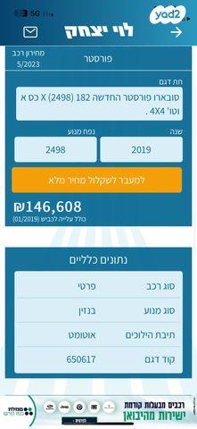 סובארו פורסטר 4X4 1 אוט' 2.5 (182 כ''ס) בנזין 2019 למכירה בתל אביב יפו