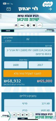 סובארו XV 4X4 Premium אוט' 1.6 (114 כ"ס) בנזין 2017 למכירה בבת ים