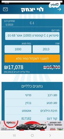 סיטרואן C1 Comfort אוט' 1.0 (68 כ''ס) בנזין 2013 למכירה בירושלים