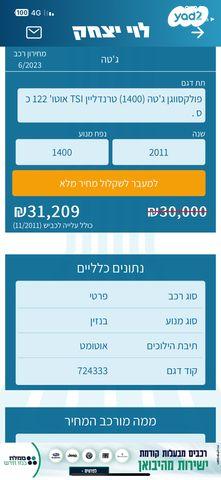 פולקסווגן ג'טה Trendline אוט' 1.4 (122 כ''ס) [2008-2011] בנזין 2011 למכירה ביד בנימין