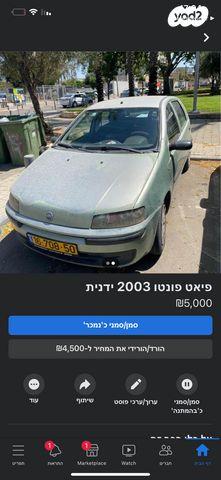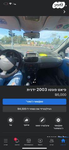 פיאט פונטו ספייס (דור II) Young ידני 1.2 (60 כ''ס) בנזין 2003 למכירה בראשון לציון