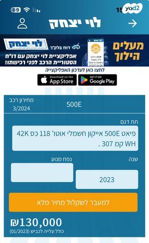 פיאט 500 Icon 3+1 אוט' הצ'בק חשמלי (118 כ"ס) חשמלי 2023 למכירה בהרצליה