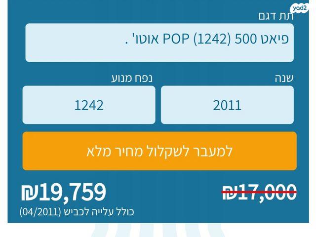 פיאט 500 Pop אוט' 1.2 (69 כ"ס) [2009-2014] בנזין 2011 למכירה בעיילבון