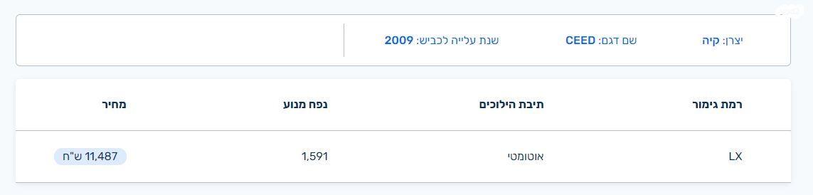 קיה סיד / CEED LX אוט' 1.6 (125 כ''ס) בנזין 2009 למכירה בהרצליה