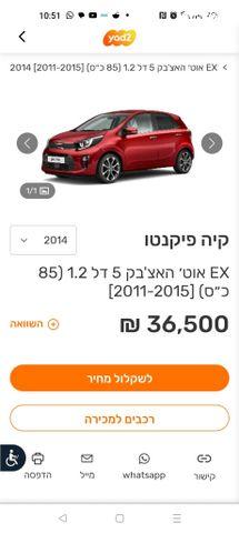 קיה פיקנטו EX אוט' 1.2 (85 כ"ס) בנזין 2014 למכירה ברמת גן