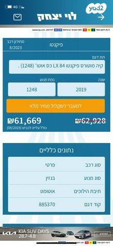 קיה פיקנטו LX אוט' 1.2 (84 כ"ס) בנזין 2019 למכירה בקדימה צורן