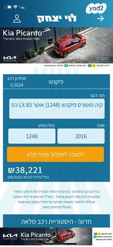 קיה פיקנטו LX אוט' 1.2 (85 כ"ס) בנזין 2016 למכירה במודיעין מכבים רעות
