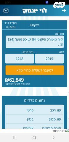 קיה פיקנטו LX אוט' 1.25 (84 כ"ס) בנזין 2019 למכירה בירושלים