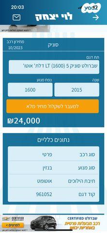 שברולט סוניק LTZ הצ'בק אוט' 1.6 (116 כ"ס) בנזין 2015 למכירה בראשון לציון