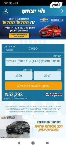 שברולט ספארק LT Plus אוט' 1.4 (98 כ"ס) בנזין 2017 למכירה באשדוד