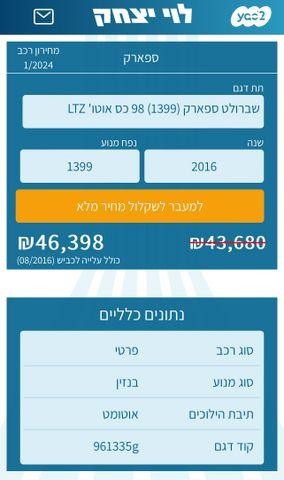 שברולט ספארק LTZ אוט' 1.4 (98 כ"ס) בנזין 2016 למכירה באשדוד
