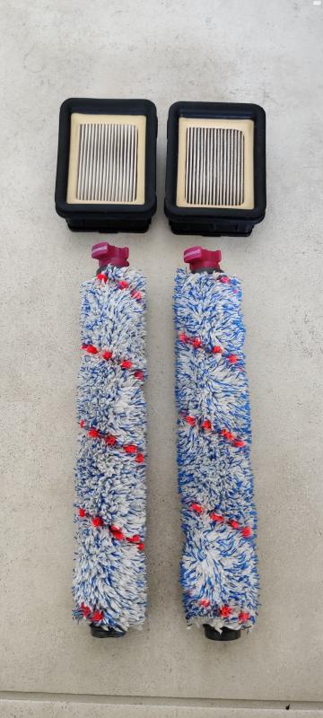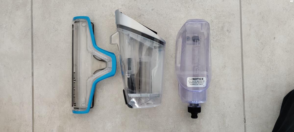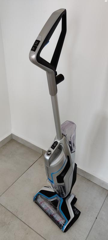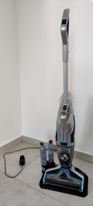 שואב שוטף Bissell Crosswave Cordless אלחוטי נטען ידני הכולל מיכל למים ונוזל שטיפה, מיכל למים והלכלוך הנשאבים, עמדת טעינה, שתי מברשות ושני מסננים (מברשת אחת ומסנן אחד נקנו בנפרד).המכשיר מתיז מים עם נוזל שטיפה על המברשת המסתובבת ושואב מהמברשת את המים המלוכלכים.מצב כמו חדש, היה בשימוש מספר ימים שואב שוטף Brosswave Cordless