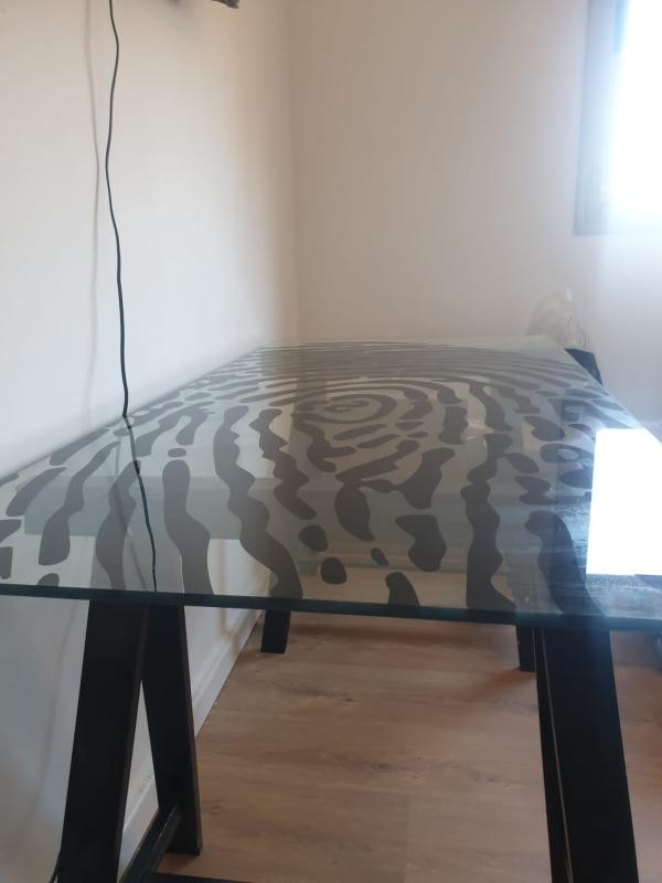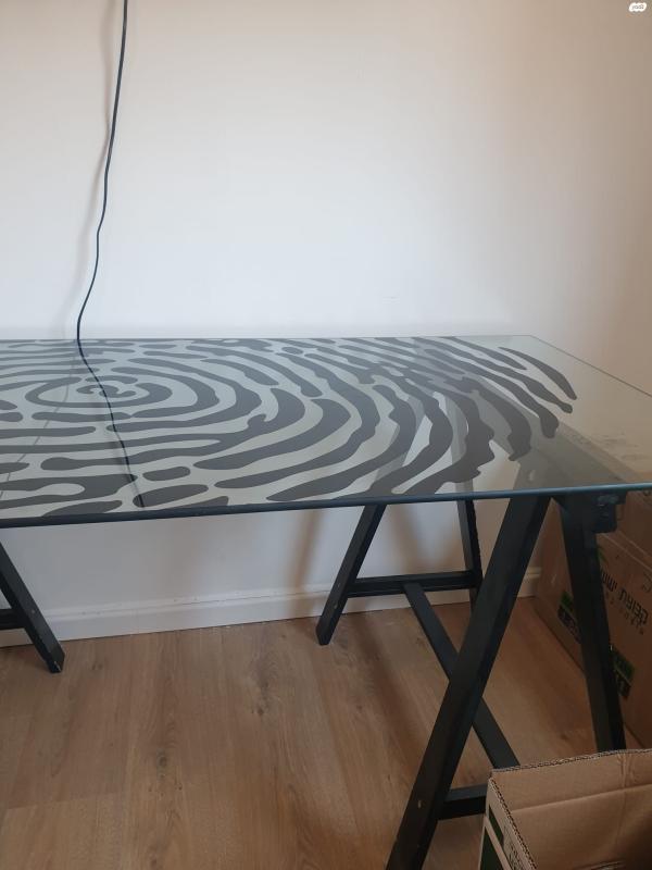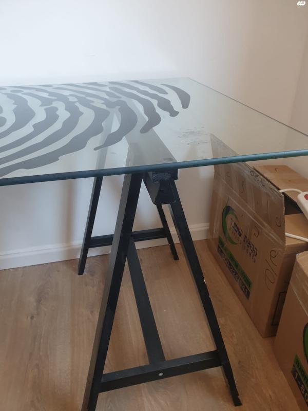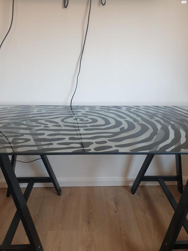 שולחן עבודה זכוכית עם רגלי חמורים הביטאטהדפס שחור על גבי הזכוכית, מראה ייחודישולחן גדול ורחב, מידות 74×170מצורפות תמונותיש 2 שולחנות שולחן מחשב מזכוכית מחוסמת
