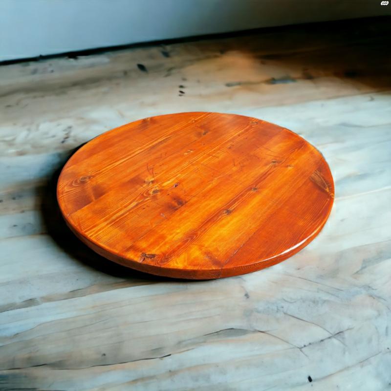 פלטת עץ אורן מלא עגולה יפהפיה , מתאימה לשולחן סלון או שולחן קפה / מרפסת , צבועה בצבע חום אדמדם ומשוייפת. חלקה מאוד. נעימה למגע. קוטר 74 סמ , עובי 3.5 סמ , משקל 8 קג פלטת עץ מלא עגולה לשולחן
