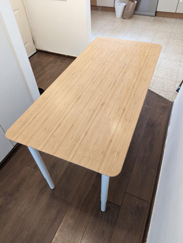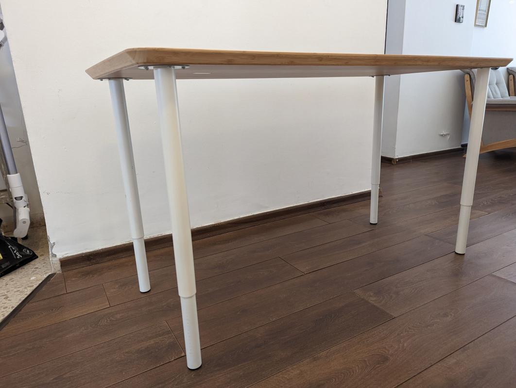 שולחן כתיבה מודולרי של איקאה, כולל משטח עליון במבוק (ANFALLARE) ו- 4 רגליים מתכווננות בצבע לבן (OLOV).מידות משטח 140 ס"מ על 65 ס"מ. הרגליים מתכווננות בין 60-90 ס"מ גובה.במצב כמו חדש, נקנה לפני כשנתיים ונמכר עקב מעבר לחו"ל.ניתן לראות פרטים מלאים על המוצר באתר של איקאה שולחן כתיבה מודולרי של איקאה