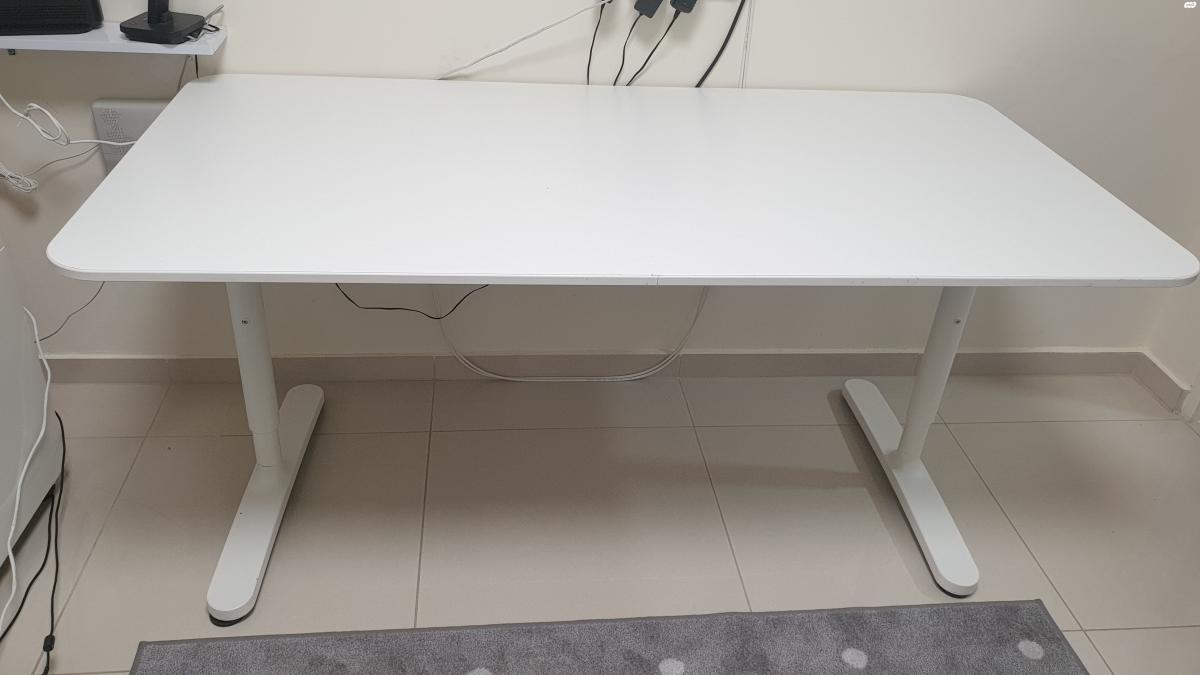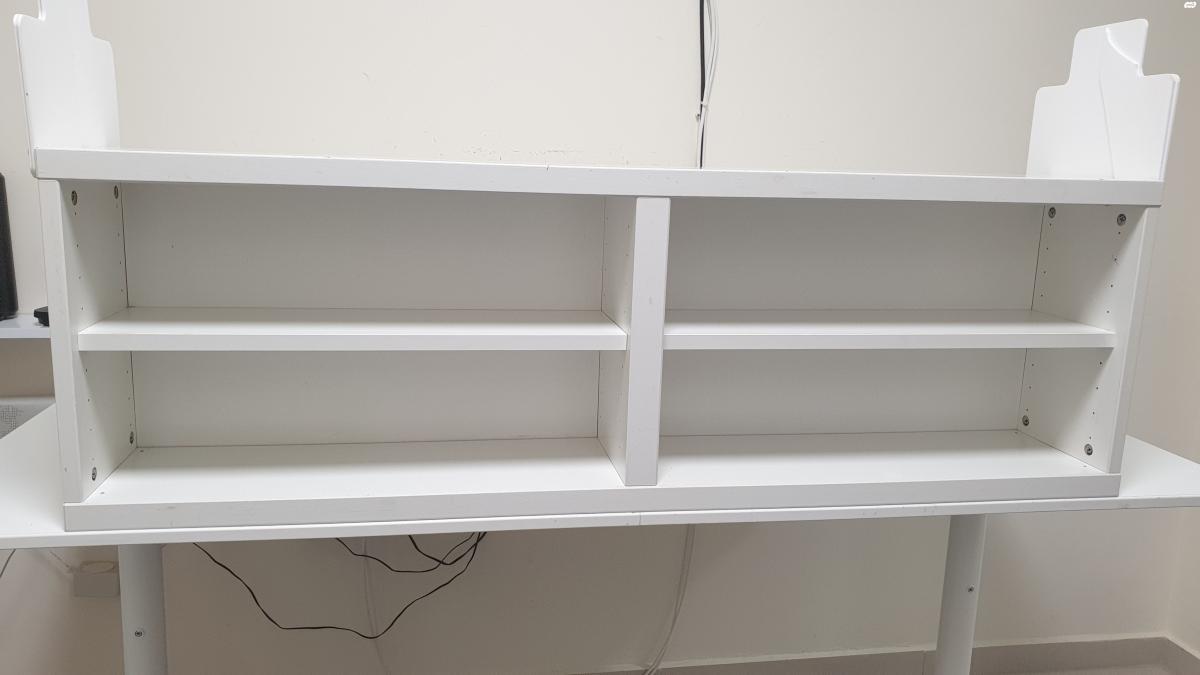 שולחן כתיבה מתכוונן 160/80. שינוי תנוחת עבודה מישיבה לעמידה . הידית מאפשרת לקבוע את גובה השולחן בהתאם לתנוחת ידיכם. גובה מסייע לכם להזיז את גופכם כך שתרגישו ותעבדו טוב יותר. מדפים כתוספת לא קבועים שולחן כתיבה מתכוונן+מדפים