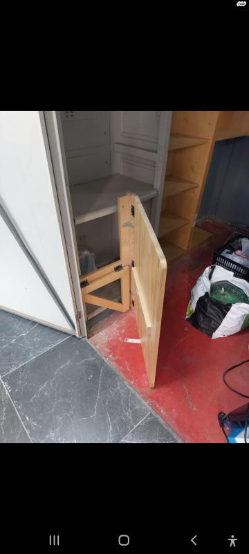 שולחן מתקפל בקדיחה לקיר.( כמו מדף שעולה ויורד)יציב מאד מאיקאה חדש לחלוטין מצויין לגינה ולמרפסת ולמקומות צפופים. חדש, לא היה בשימוש שולחן נשלף צמוד לקיר