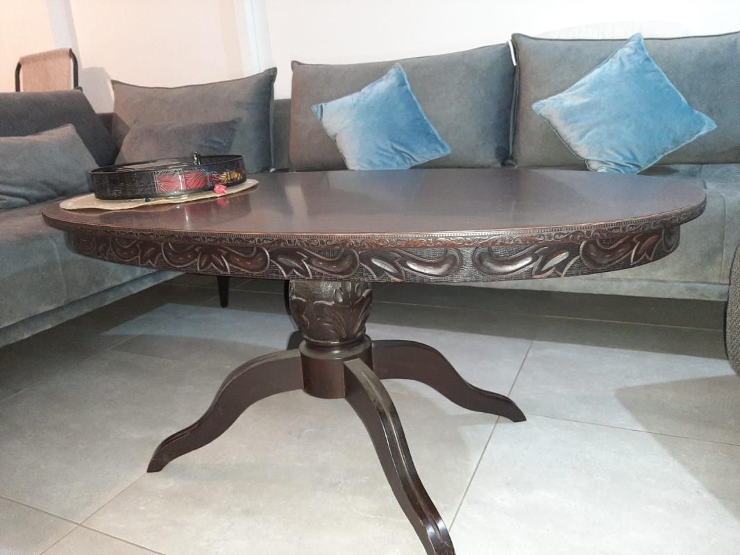 שולחן סלון בסגנון עתיק בצורת אליפסה .מידות : רוחב 67 ס"מ אורך 1.20 מ' וגובה 52 ס"מ במצב מעולה ללא שריטות ופגם בצבע שולחן סלון