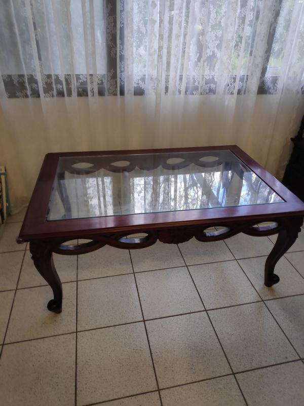 שולחן סלון בסגנון עתיק כולל הדום טועם ,במצב מצוין זכוכית מחוסמת .אורך 1.20 רוחב 0.80 גובה 0.50 ס"מ שולחן סלון בסגנון עתיק מעץ מלא