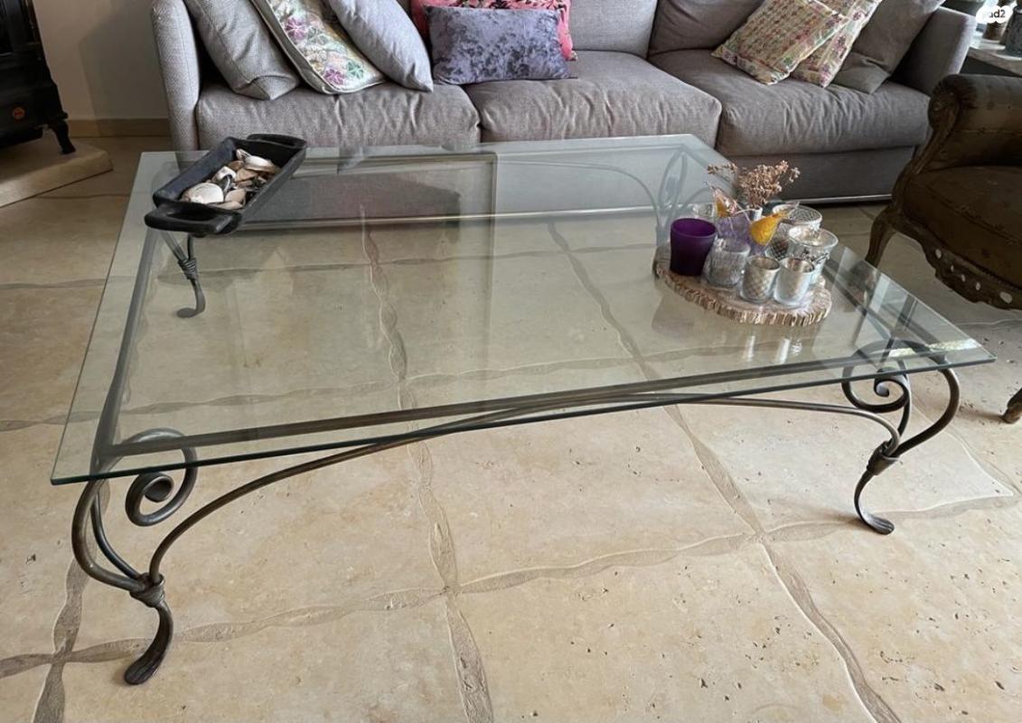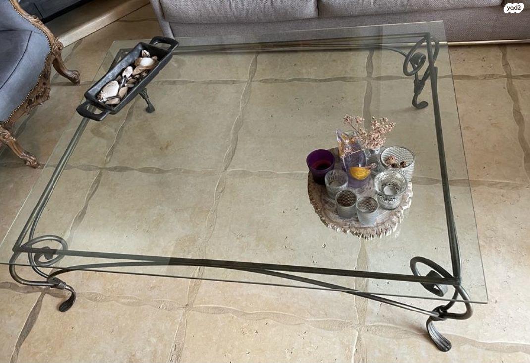 שולחן סלון זכוכית עם ברזל