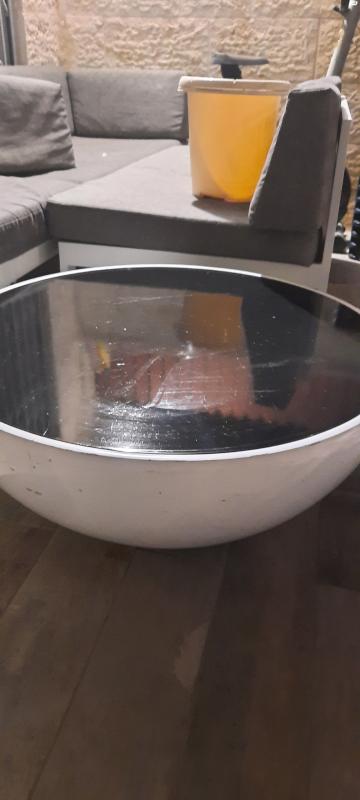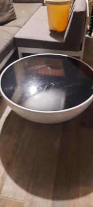 שולחן סלון עגול לבן אפוקסי עם זכוכית שחורה עבה מאוד שולחן סלון שחור לבן עגול