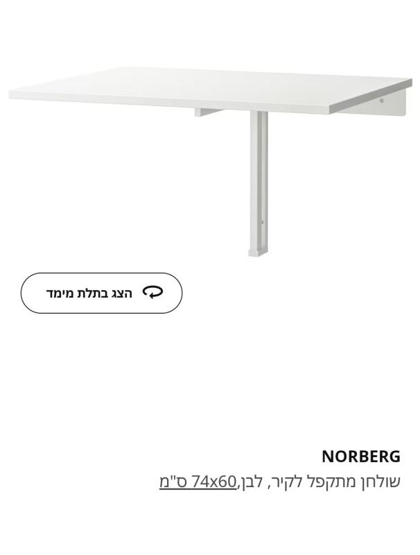 שולחן קיר מתקפל מדגם Norberg של איקאה. נקנה ב- 11.1.23. מידות: 74/60 במצב פתוח. מתקפל במקביל לקיר שולחן מתקפל של איקאה מדגם
