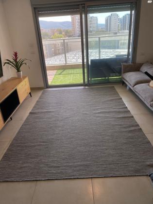 שטיח באריגה שטוחה בצבע אפור דוחה כתמים. מתאים לשימוש גם מחוץ לביתגודל 200*300 ס"מנרכש באיקאה שטיח גדול