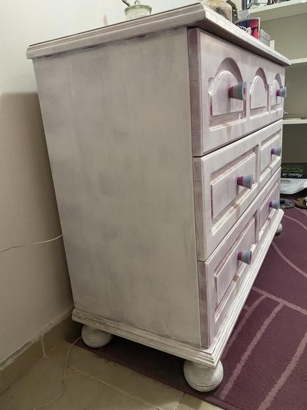 למכירה שידה גדולה מעץ מלאצבועה לצבע ורוד ולאחר מכן צבענו מעל בלבן.ניתן לשייף את הצבע ולגלות את העץ.יש שלוש מגירות,מגירה ראשונה מחולקת ל-3 תאיםמגירה שנייה מחולקת ל-2 תאיםומגירה שלישית לא מחולקתמידות: 1.05 על 42גובה - 80 ס"מיש גמישות במחיר שידה גדולה
