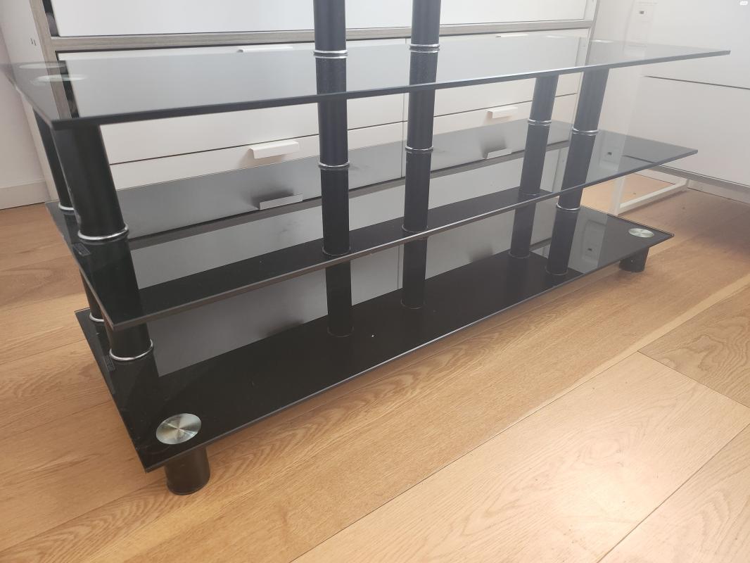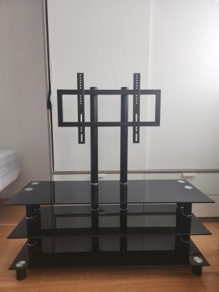 שידת טלויזיה יפיפייה ויוקרתית. משדרגת כל חדר. עשויה מזכוכית שחורה מחוסמת ואלומיניום. 3 מדפים. מתאימה לטלויזיות עד 55 אינץ. איסוף עצמי מהרצליה. קצת גמיש לא הרבה שידת טלויזיה זכוכית שחורה
