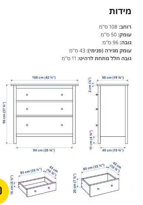 שידת מגירות איקאה HEMNES במצב טוב מאד