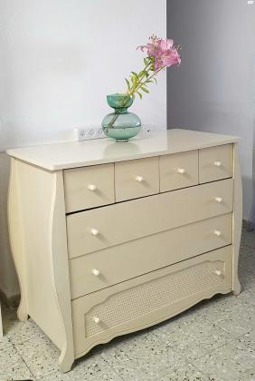 שידת עץ מלא קסומה במראה וינטג'י עם דיטיילים יפים. מכילה המון! מגירות בגדלים שונים.עומק 55סמרוחב 112סמגובה 93סמ שידת עץ מלא כפרית