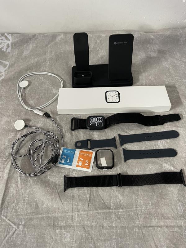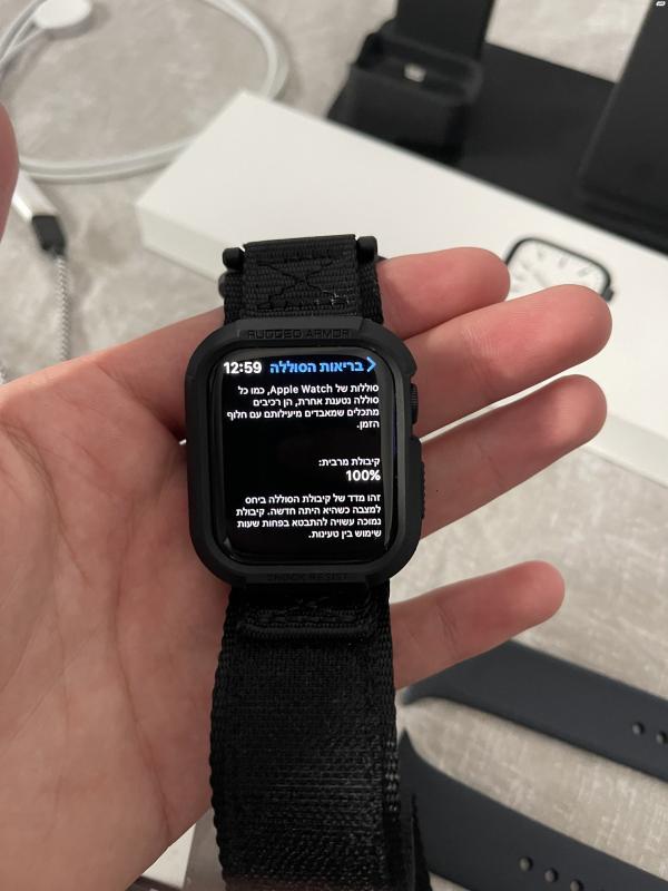 אפל ווטש סדרה 7 45 ממ דגם סלולר.נקנה בתחילת חודש מאי, יש קבלה ואחריות יבואן רשמי לשנה (5/23). השעון שומש בקושי שבועיים והוא במצב חדש כאילו הוא נפתח היום בלי שריטות ובעיות. בריאות סוללה- 100%. השעון מגיע עם 3 רצועות, כבל מקורי וכבל הטענה המתפצל לאייפון ולשעון, 2 מגני מסך ועמדת טעינה אלחוטית (עלתה לי 150 שקל) לאייפון לשעון ולאירפדוס. השעון במצב מדהים כל הקודם זוכה apple watch 7 45mm cellular